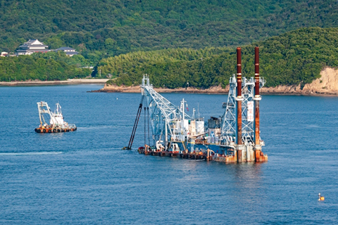 日本の輸出入貨物はその多くが船便でやりとりされています。問題なく輸出入が行われるためにも港湾整備は欠かせません。港をつくるためにも、まず必要となるのはしゅんせつ工事です。もし、航路や泊地の水深が十分でなければ、大型船のお腹が海底にぶつかり進めなくなってしまう危険があります。港湾整備にあたっては、海底の土砂をしゅんせつ工事によって取り除き、航路と泊地を作ることが大事です。近年、コンテナ船は巨大化が進んでいるため、すでにある航路の深さや幅を広げるためにしゅんせつ工事をしなければいけないこともあります。